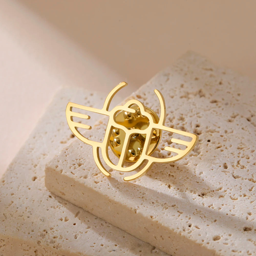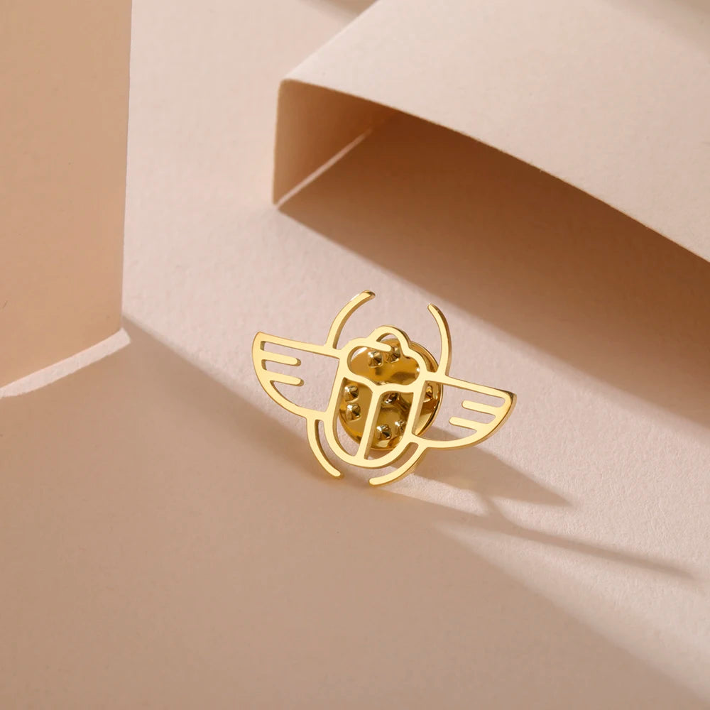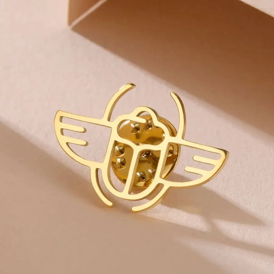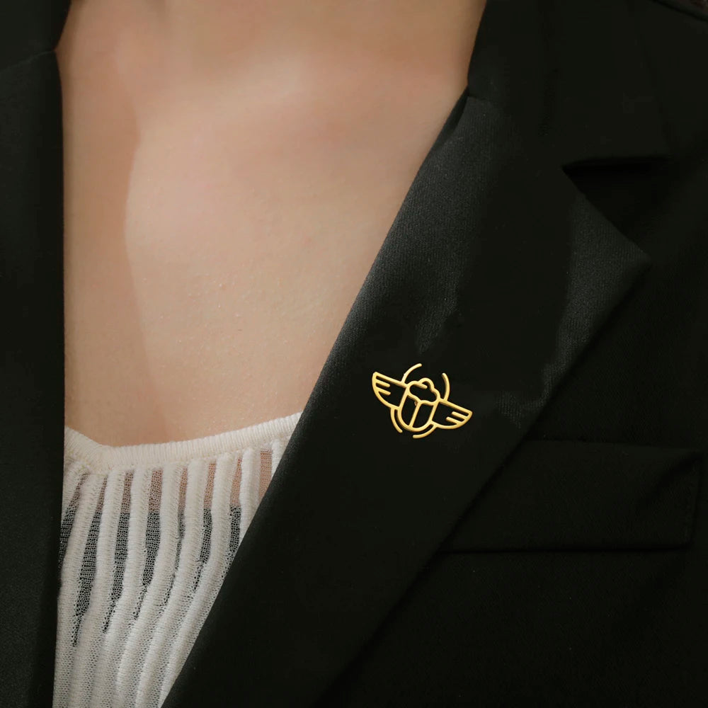 Broche scarabée égyptienne : Dans la culture égyptienne antique, le scarabée était considéré comme un symbole du dieu soleil. Ses actions étaient chargées de connotations sacrées et étaient considérées comme porteuses de protection et de bénédiction. Les Égyptiens pensaient que le scarabée symbolisait la créature de la régénération et de la renaissance. Il était symbole de pouvoir, de statut social et d'ordre social, représentant la création du monde et capable d'offrir une nouvelle vie.