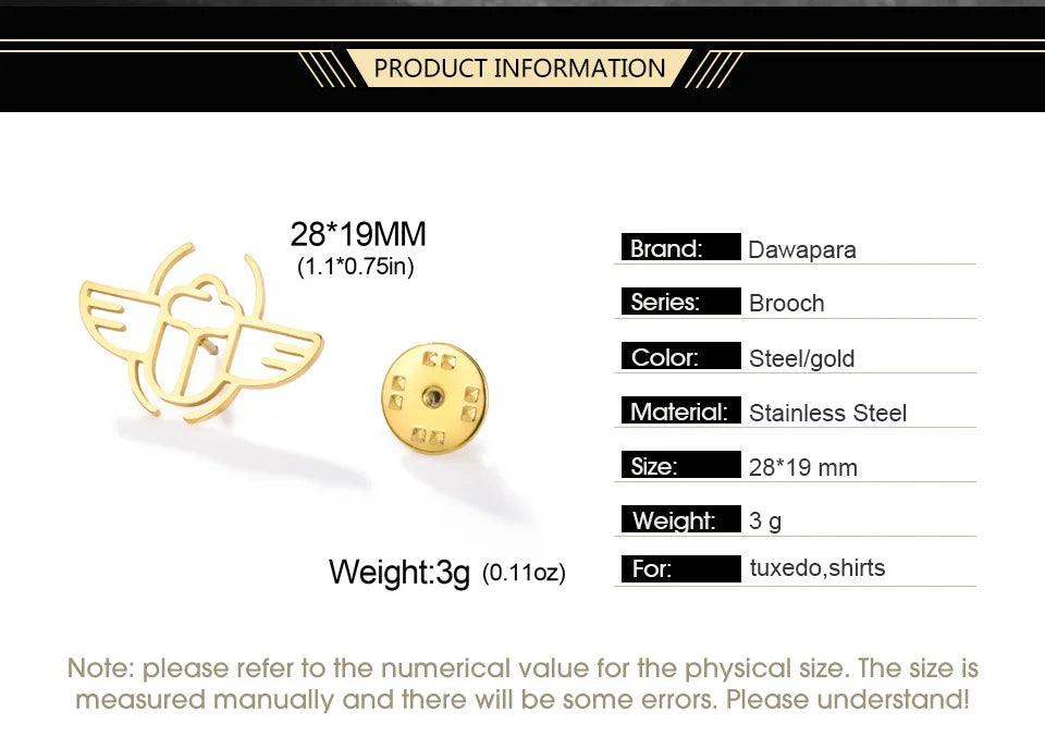 Broche scarabée égyptien antique Dawapara, animal égyptien, totem de protection et de bénédiction, talisman en acier inoxydable, bijoux