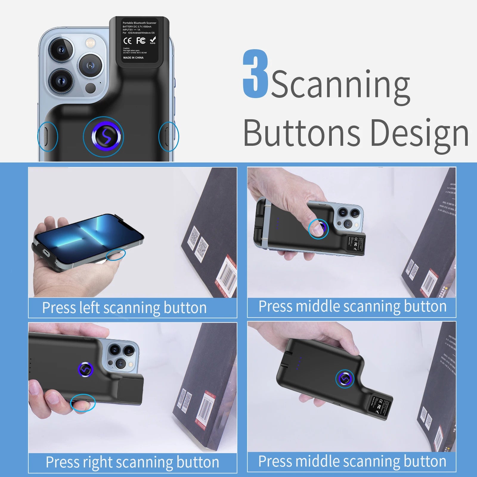 Scanner de codes-barres 2D portable sans fil JEESTON BX75, scanner mobile à clipser pour smartphones