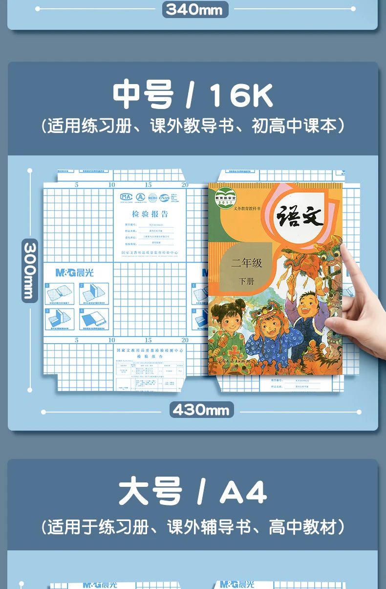La couverture pour carnet M&G A4/16K est dotée d'une conception auto-adhésive, garantissant une fixation sûre et sans tracas à votre carnet.