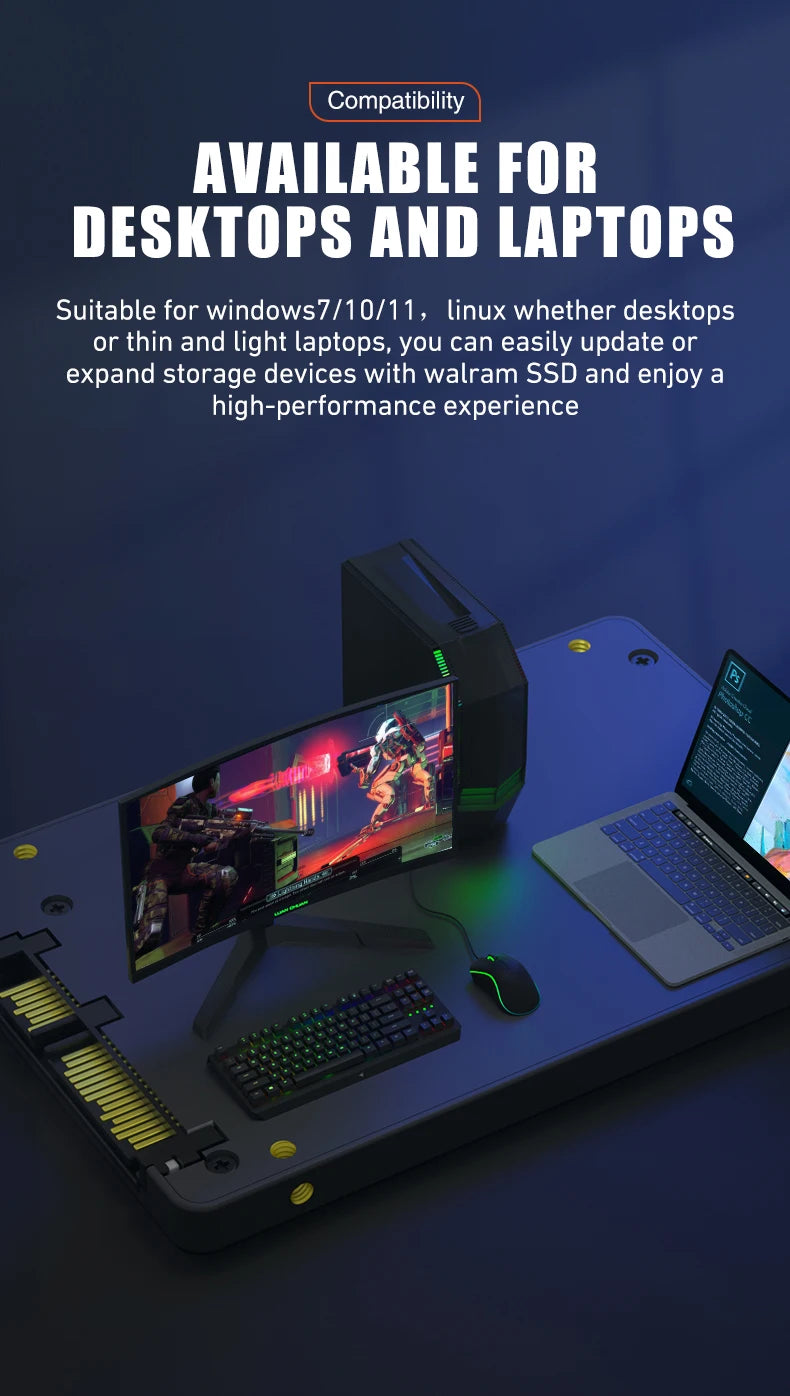 Disque dur SSD Walram 1 To SATA3 SSD 120 Go 240 Go 128 Go 256 Go 480 Go 512 Go 500 Go pour ordinateur portable de bureau