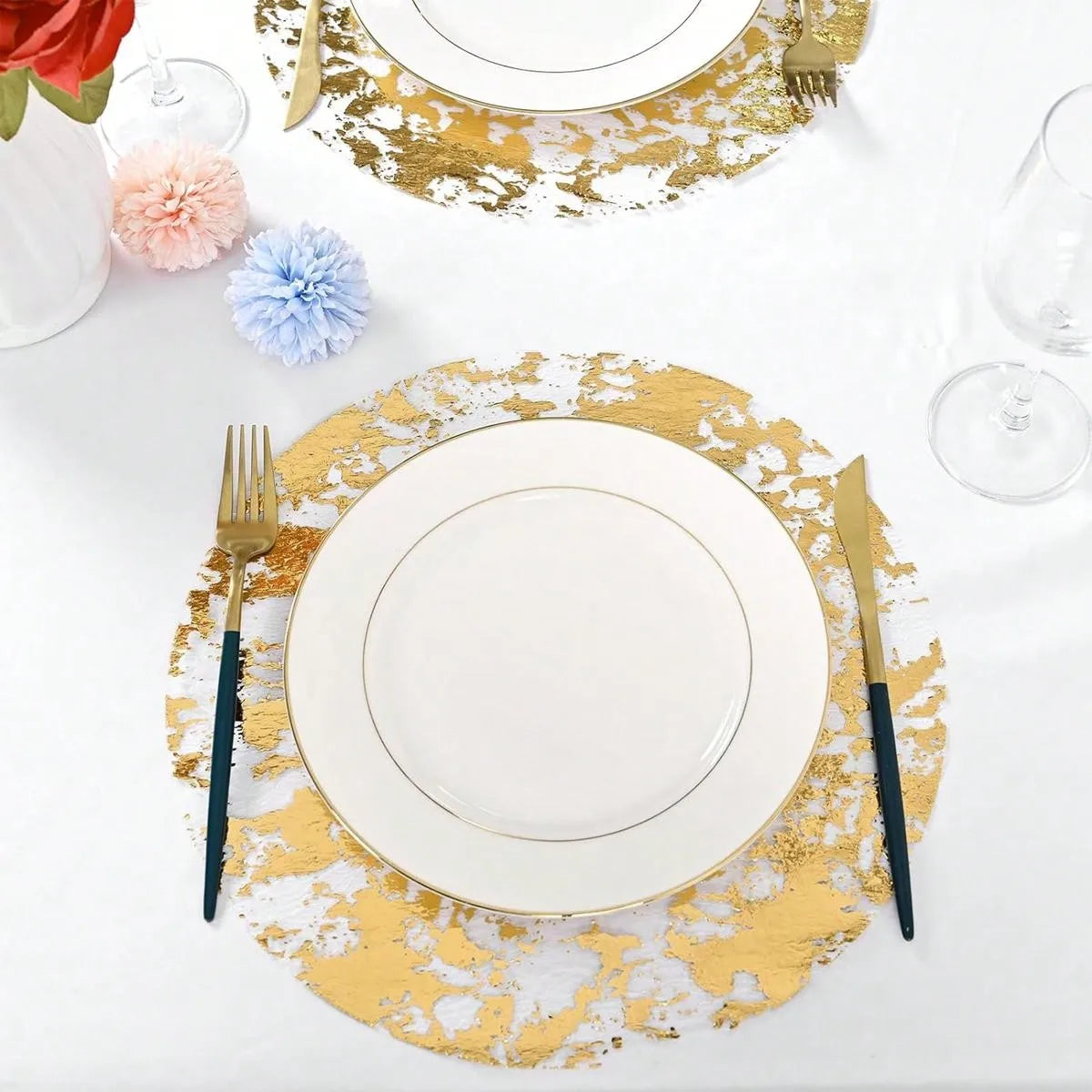 Comprehensive Bundle for Large Gatherings: this package includes 50/100/150/200 pcs gold placemats that combine functionality with opulence, making them a suitable choice for grand events or large gatherings.
