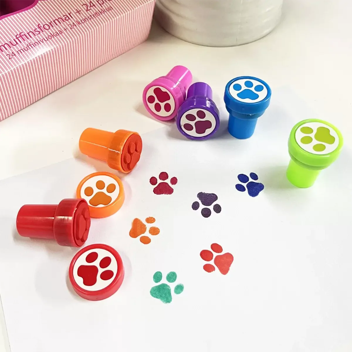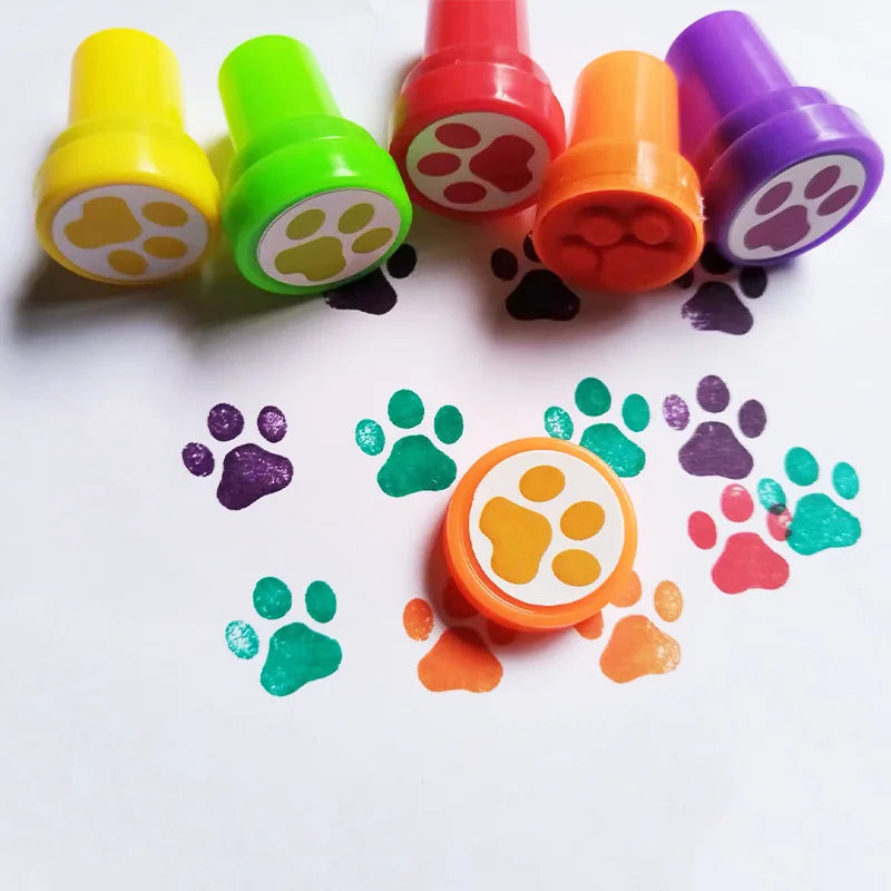 6pcs/set Cute Cartoon Dog Paw Small Seal Children Puzzle DIY Toys Kindergarten Teachers Encourage Praise Round Stamps Print