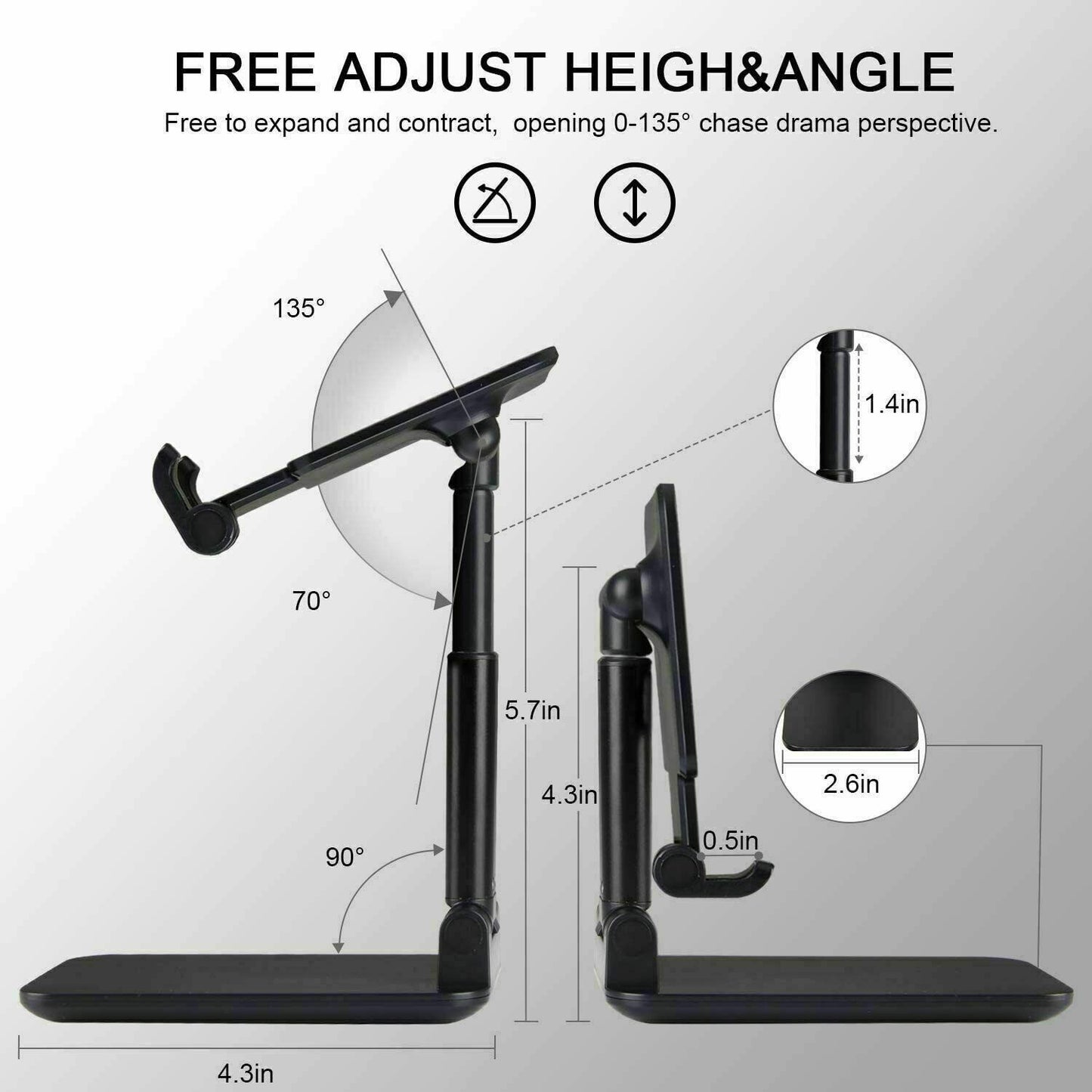 】The desktop phone holder stand can be adjusted from 4.3” to 6.3”,easily extendable in height. Also, it allows you to customize the angle of your device flexibly to find the most comfortable viewing angle. Reduce the frequency of looking down at the phone screen to avoid hurting your back and neck.