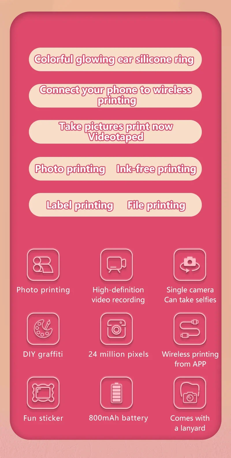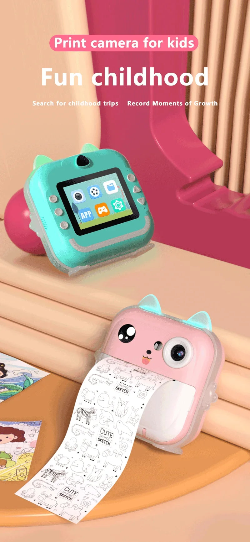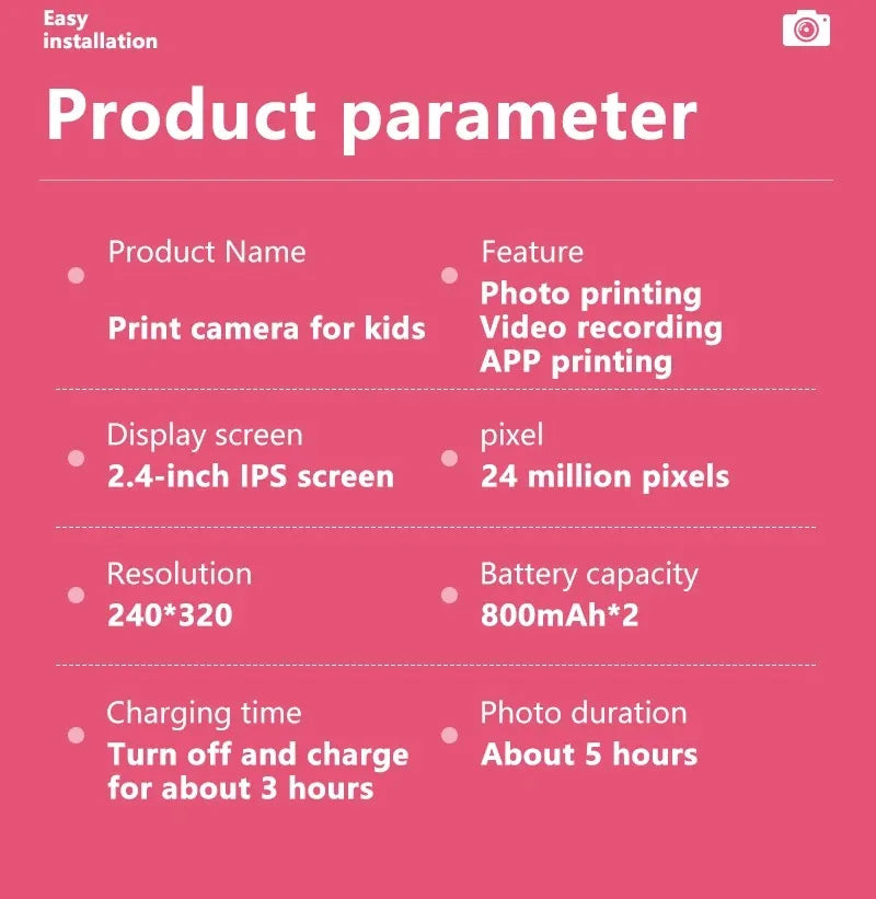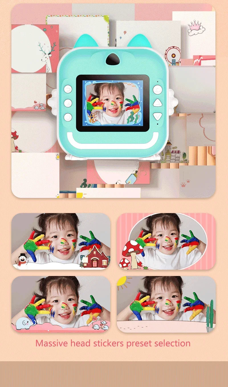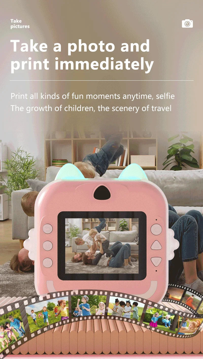 Digital Camera Toys Kids Instant Print Thermal Print Camera Instant Print Photo Video with 32G Memory Card Kids 1080P HD