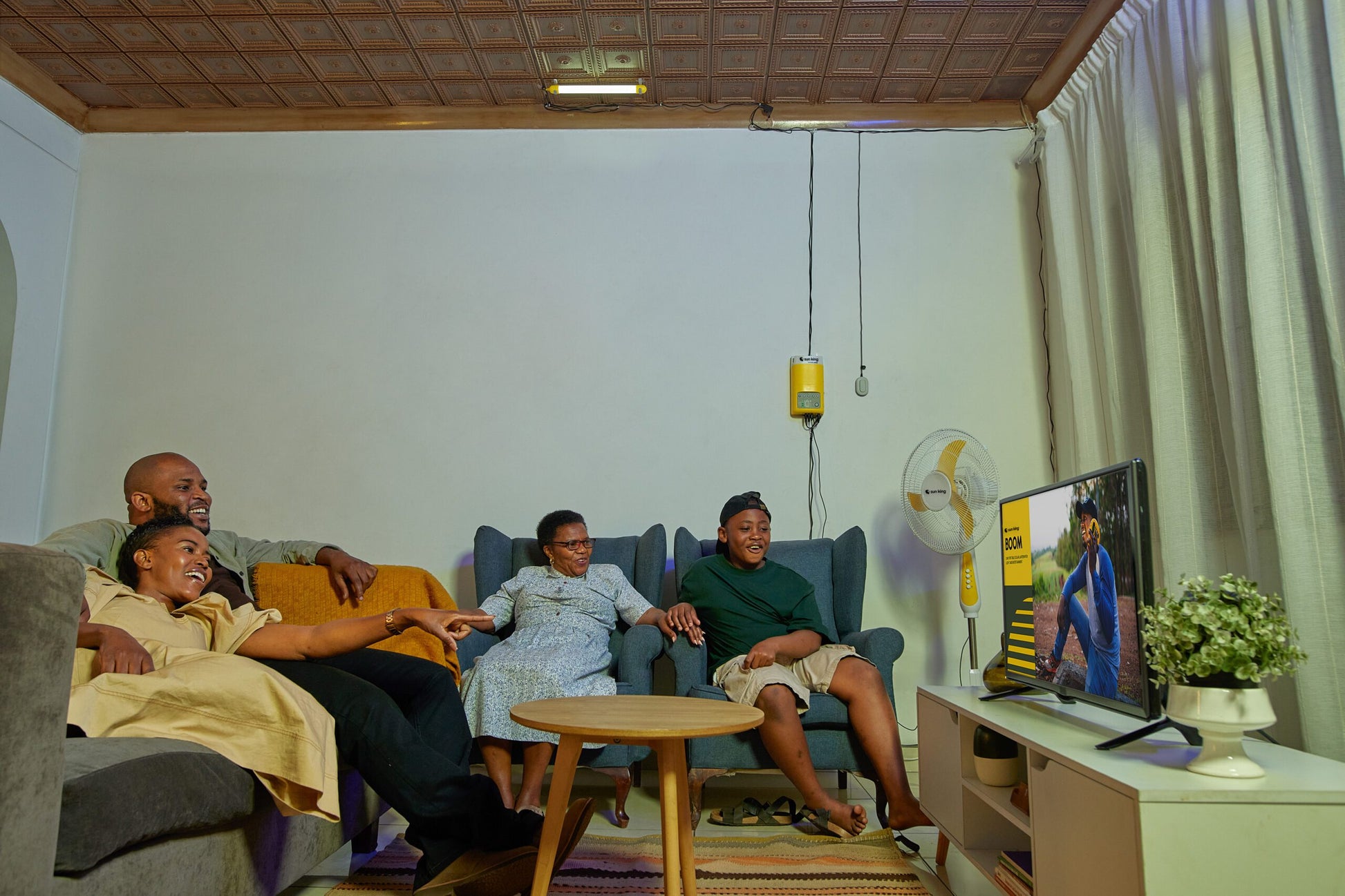 Light your home, charge your phones, and power compatible TVs, radios, and fans with Sun King’s ultra-affordable solar home systems.