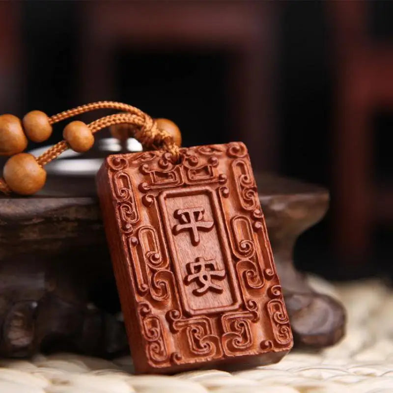 Peach wood key chain Ping An car key chain pendant
