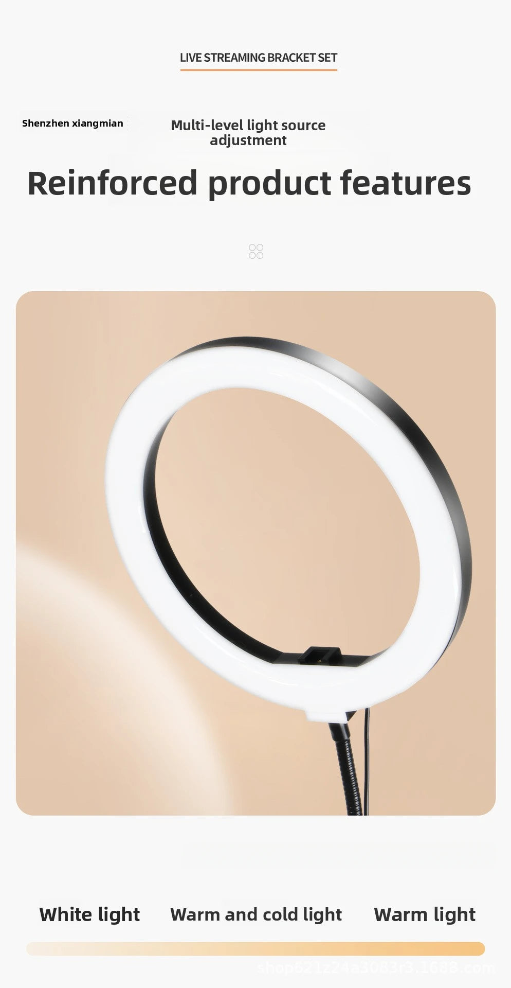 Phone Live Streaming Stand Desktop Multifunctional Overhead Shooting Floor Tripod with Fill Light for Selfie and Video Shooting